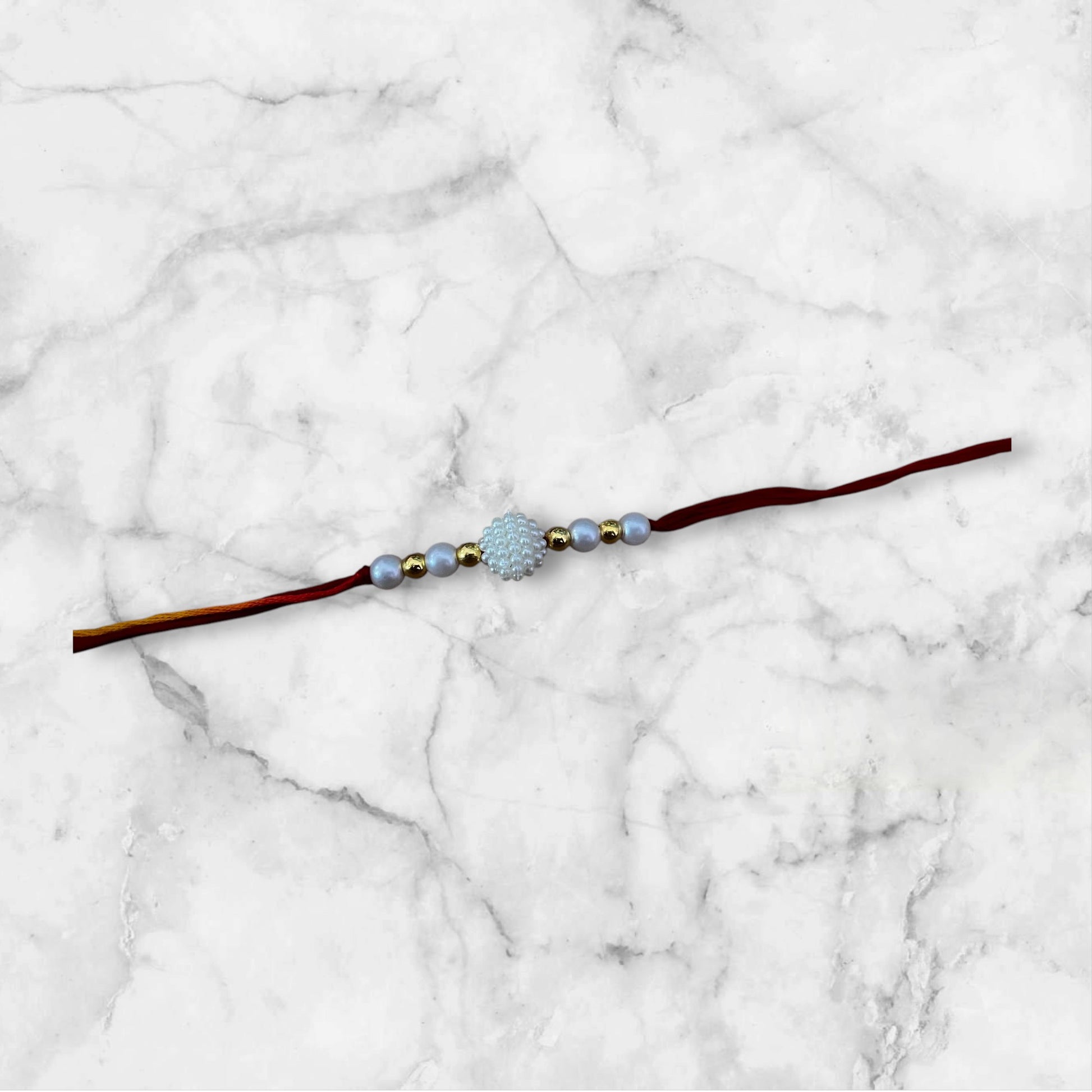 Celebrate the bond of love with this elegant, hand-crafted Pearl Rakhi. Thoughtfully designed with care and creativity, it's the perfect gift to make your sibling feel special, cherished, and deeply loved.